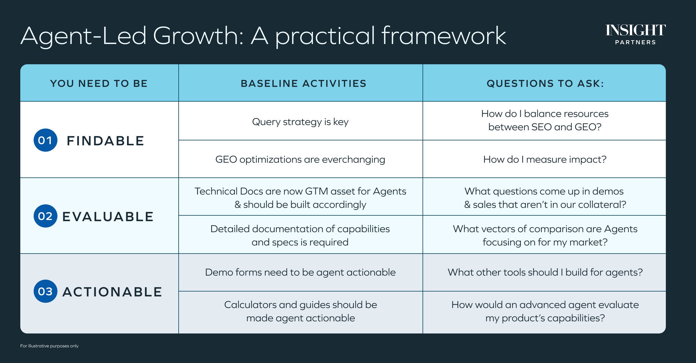 Expert analysis by GTM leaders at Insight points to a consistent set of principles on how Agents learn and act. The practical framework distills to three properties your product and GTM need to evaluate to win in an Agent-mediated world.