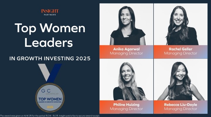 Insight Partners Managing Directors Anika Agarwal, Rachel Geller, Philine Huizing, and Rebecca Liu-Doyle have been named to GrowthCap’s list of the Top Women Leaders in Growth Investing of 2025.*